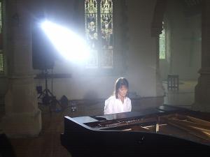 Jo at her Yamaha C7 grand piano working on songs with Frank that would eventually become the 'Raphael's Journey' album.