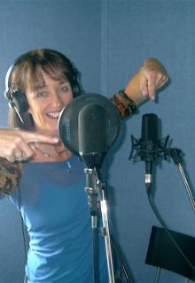 Jo recording vocals during the 'Another Realm' sessions at Dave's studio with AMS Soundfield mic (left) and AT4033 mic (right)